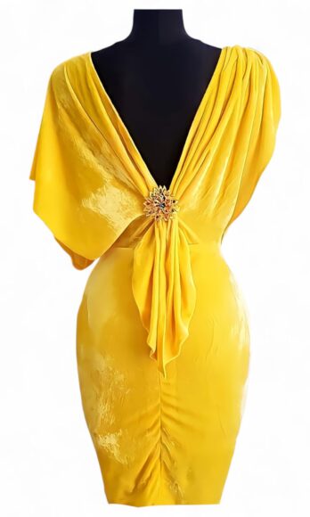 Blush stretchy-velvet asymmetric yellow dress