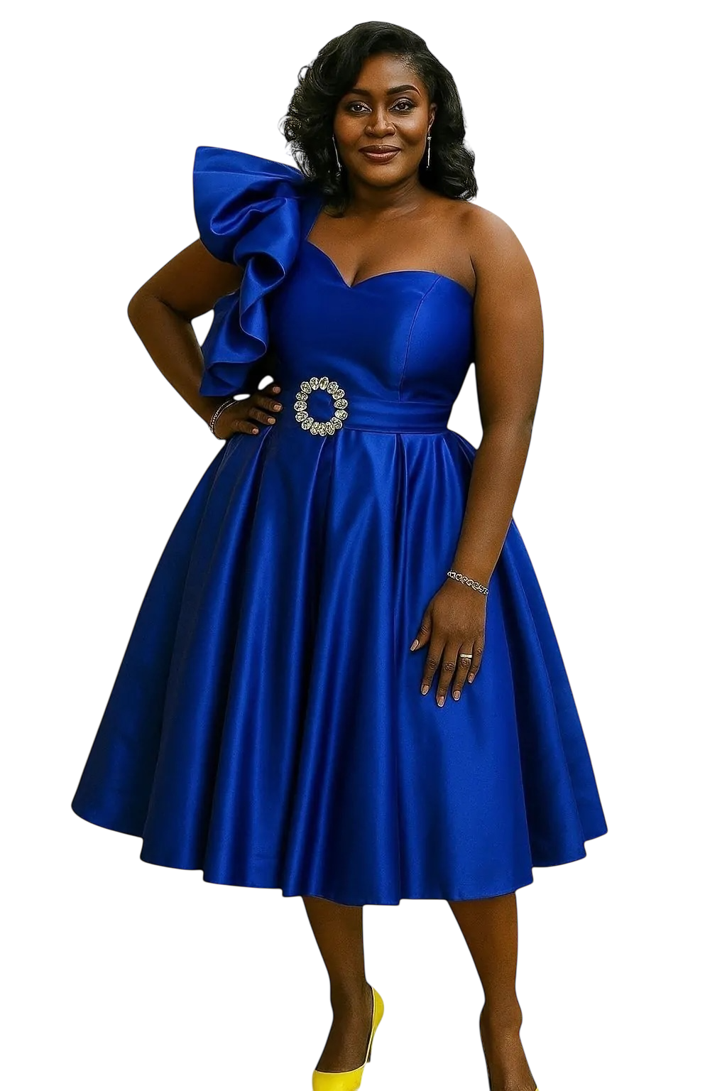 Rácia is a sophisticated dress crafted in a structured 100% cotton fabric, and a stunning print. It also features a removable belt with a buckle crafted in small diamond stones all included in this double layer skirt dress