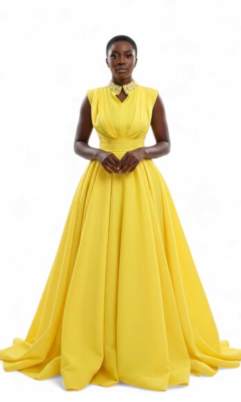 The Kim dress has a soft but unique color. This maxi dress has a long front slit and a removable belt with stoned buckle. It has a tight-fitting top with cleavage and zipper at the back. A floor length scuba dress with a pleated skirt with pockets.