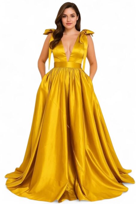 With two stylish bows on the shoulders and a revealing neckline covered with a skin color mesh, the Morena Gown is an eco-friendly piece of art crafted from recycled satin fabric.