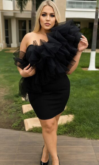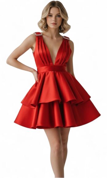 Pink bust-flowers tulle-mesh chest double-skirt satin party mini dress