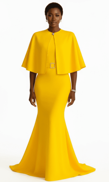 Blush sleeveless long-slit scuba yellow-mermaid gown